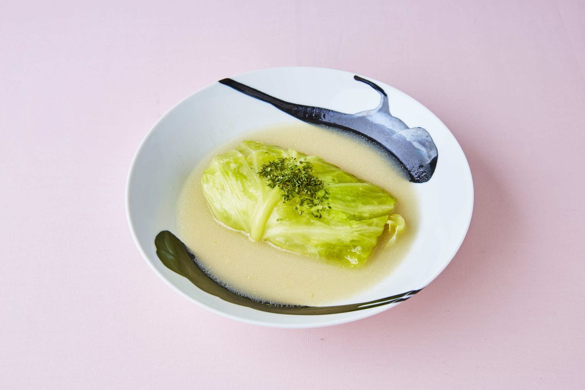 <鰆と揚げ餅の大きなロールキャベツ>は、鰆と香ばしい揚げ餅を春キャベツで包み、濃厚鶏白湯の出汁でじっくり煮込んで旨味たっぷり♪旬の味をお楽しみください。