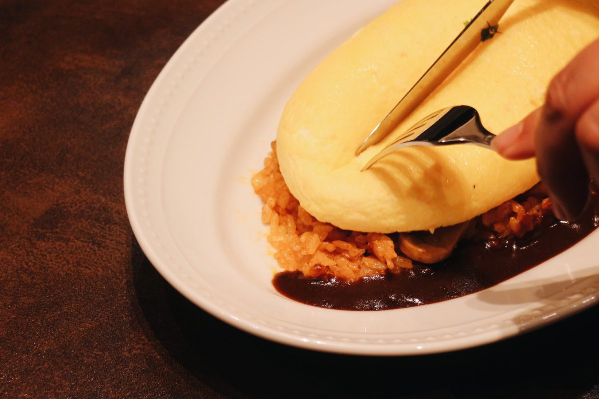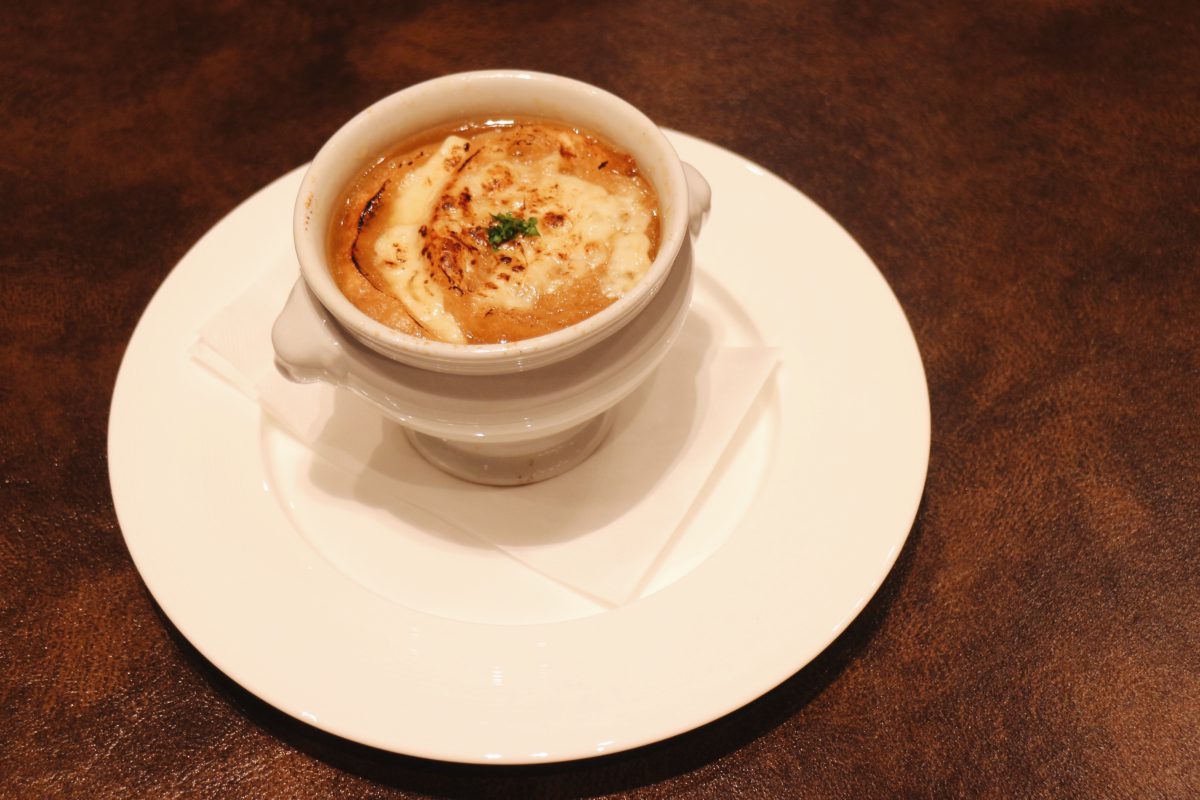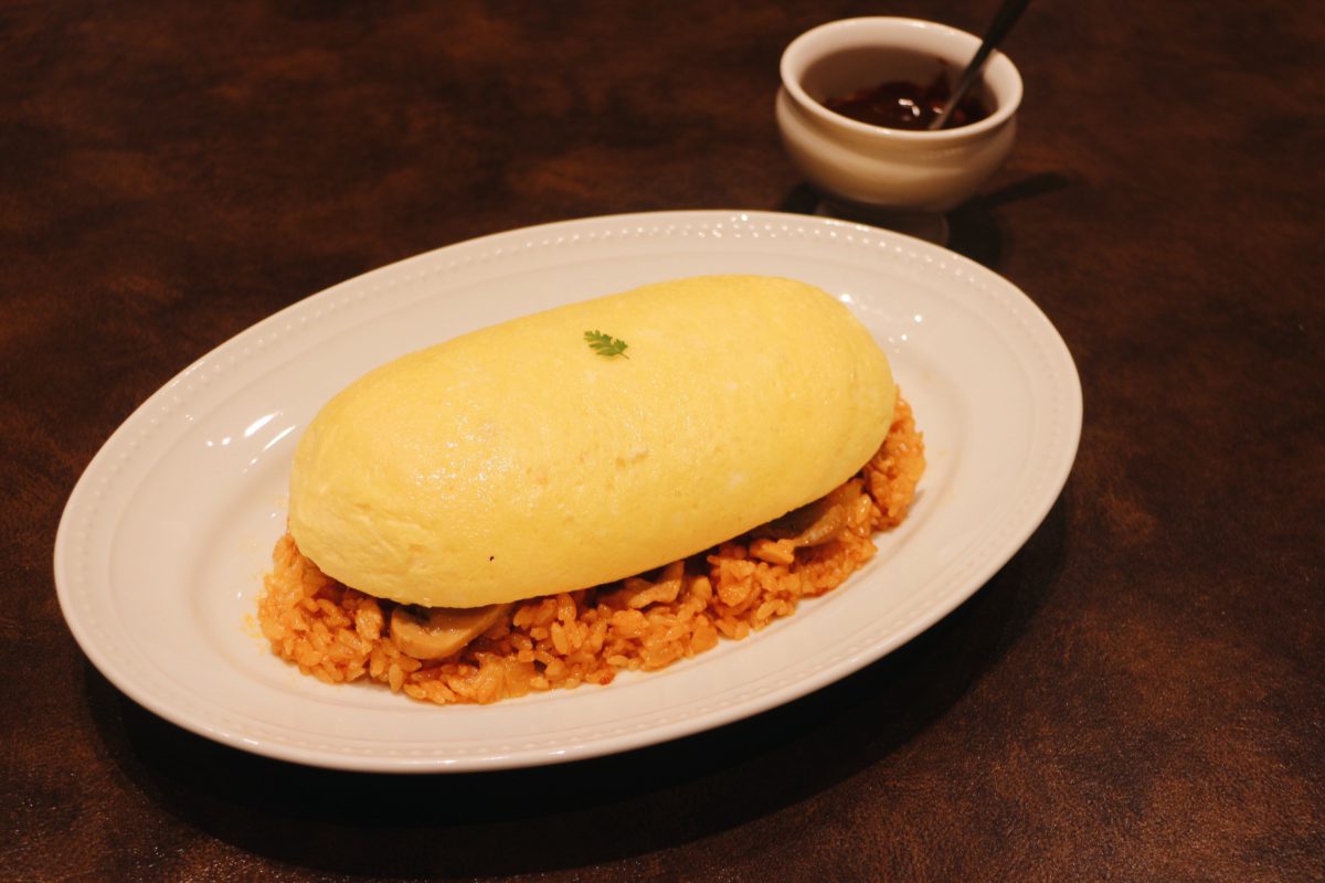ディナーの前菜には「サラダニソワーズ」や「オニオングラタンスープ」から、メインには「ステーキフリット」や「鯛のムニエル」に「ガレット」まで。〈CAFÉ AUX BACCHANALES〉の代表メニューであるおすすめの「スフレオムライス」など、どれもフランスでは人気のフードを展開している。
