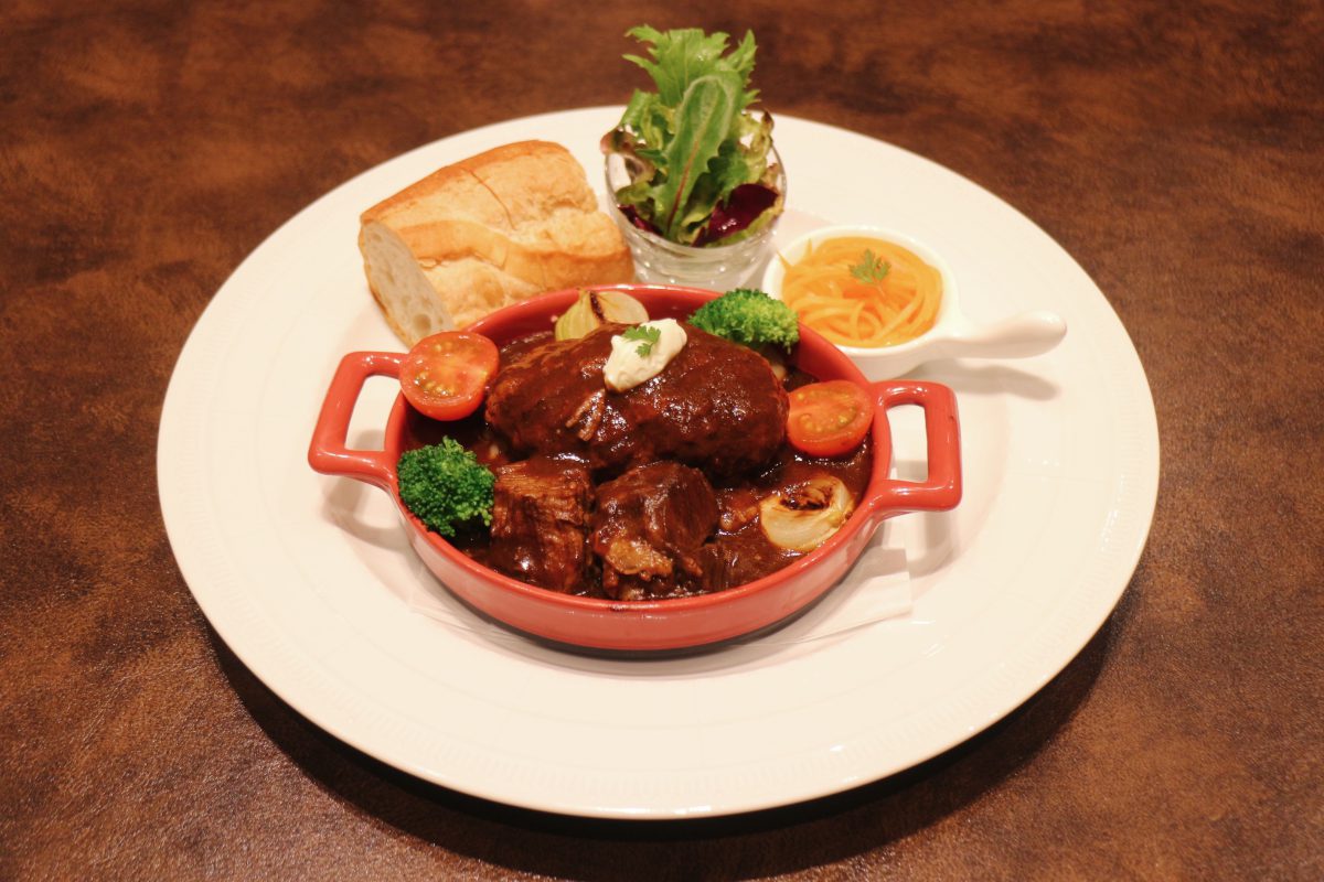 OPENから17:00までのランチタイムは、「煮込みハンバーグとビーフシチュー」や、「シーフードドリアプレート」、「キッシュ&オニオングラタンスープ プレート」「オマール海老のスフレドリアプレート」「スフレオムライス」の一皿で満足できる5種類から選べて1,300円。さらにお得なドリンクセットや、ドリンク&ケーキセットもご用意している。