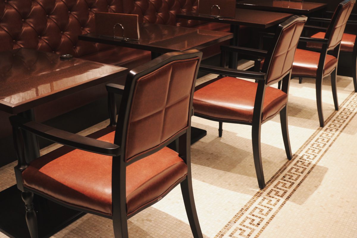 フランスの大衆文化を伝えるカフェとして、渋谷ヒカリエ7Fにオープンした〈CAFÉ AUX BACCHANALES〉。内装、カトラリーからメニュー、サービスにいたるまでフレンチスタイルを追求している。店内に一歩足を踏み入れると、全体を優しく照らす丸いライト、落ち着いた赤色の椅子とタイル、壁一面に並ぶ鏡と絵画が迎え入れてくれる。細部までこだわられた内装は本場フランスの雰囲気が感じられ、日本であることをついつい忘れてしまう空間だ。