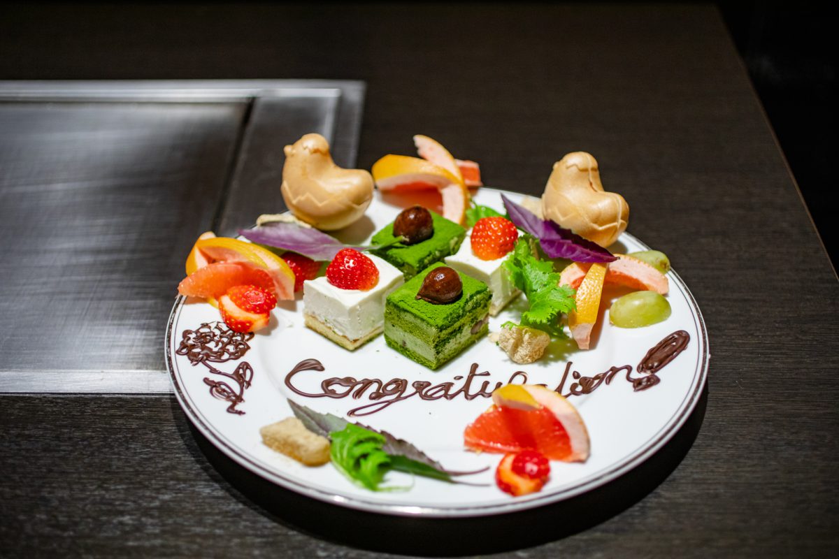 〈鉄板焼 お好み焼 かしわ〉の「メッセージ付きデザートプレート」