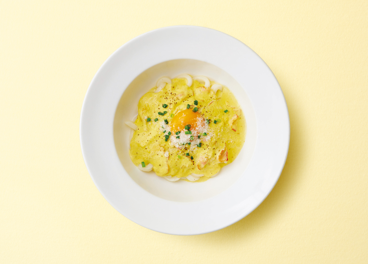 今回の<伊勢カルボ>は、茶寮伊勢 藤次郎で人気だったメニューを復活させた、期間限定のスペシャルメニュー。ふわふわ食感の伊勢うどんを、まろやかな熟成チーズ「グラナディエゾ(ファットリアビオ北海道)」の旨みが溢れるカルボナーラにアレンジしました。