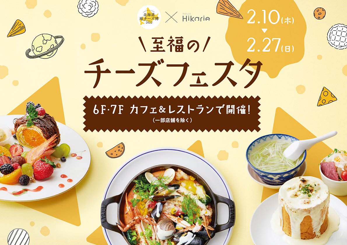 今回のグルメフェアで楽しめるのは“北海道地チーズ博2022”とのコラボレーションで実現した、こだわりの限定メニュー。濃厚、クリーミー、芳醇な香りなど、個性豊かなチーズがとびっきりのひと皿に大変身。渋谷ヒカリエ6F・7Fのカフェ&レストランでぜひ味わってみて!