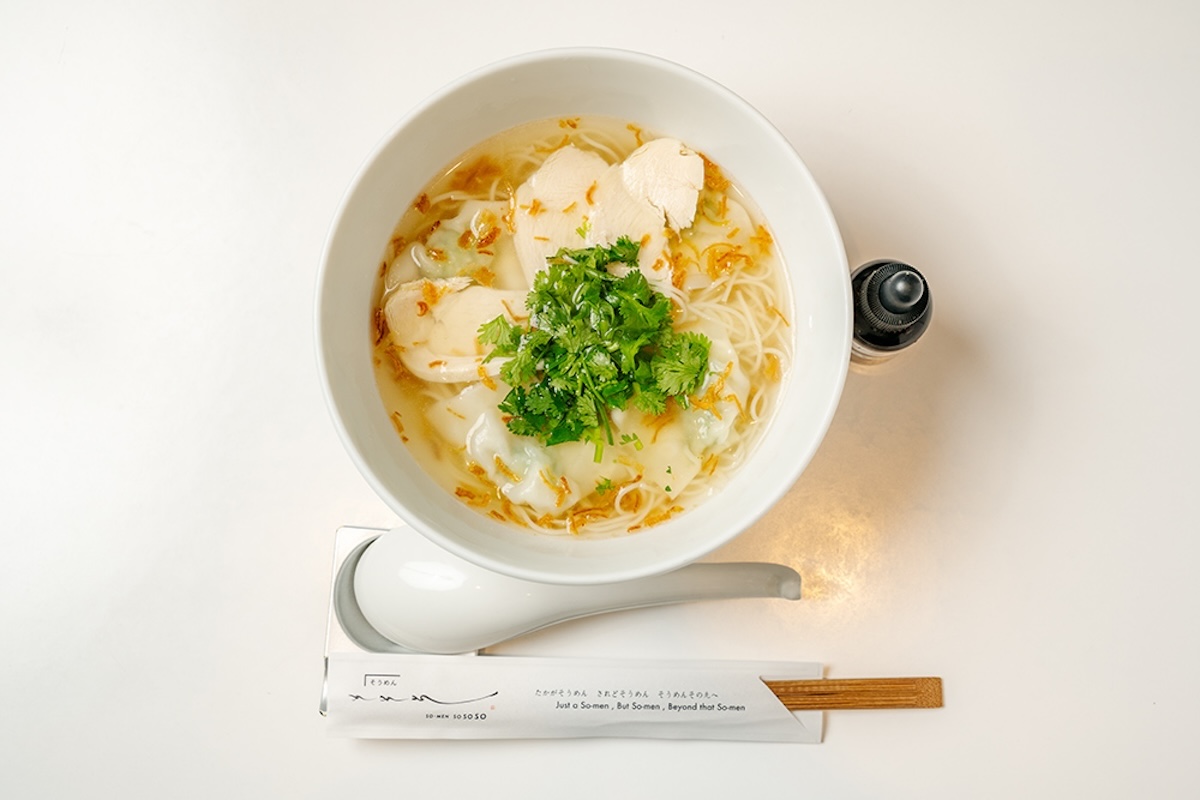 …〈そうめん そそそ 研究室〉の「鶏とワンタンのフォー風そうめん」