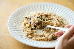 〈サブリナ パスタ&クラムチャウダー〉の「ポルチーニ茸と生ハムのチーズリゾット」