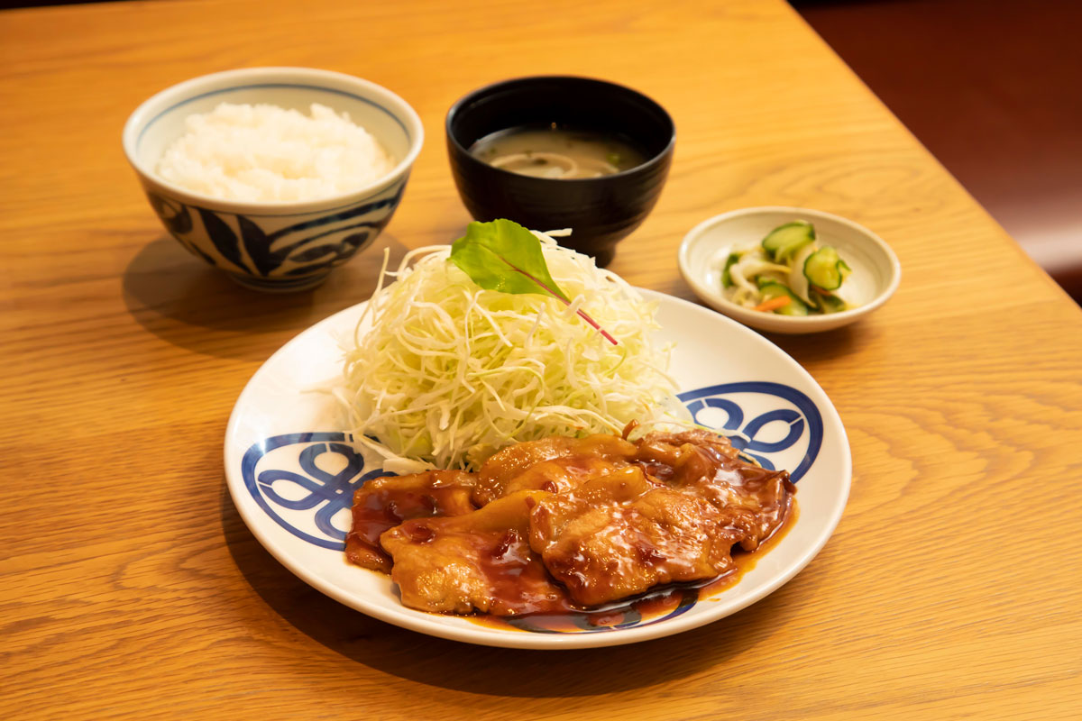 〈とんかつ まい泉〉は“箸で切れるやわらかなとんかつ”で知られる有名店。ジューシーなとんかつの美味しさはよく知られているが、ひそかにファンが多いのが「黒豚生姜焼き膳」。飼育が難しく稀少性の高い純粋バークシャー種の黒豚を使用。生姜たっぷりながらコク深い秘伝のタレが、豚肉特有の甘みのある旨みと、まろやかにとろける脂身の美味しさを引き出す。