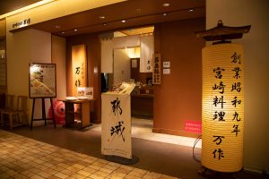 〈宮崎料理 万作〉は、宮崎で創業80年の歴史を誇る老舗料理店。「宮崎郷土料理 冷や汁万作風」は、暑い夏に農家で食べられていたことで広まった宮崎のソウルフードを万作風にアレンジ。水で洗ってさらさら食感にしたご飯の上に、豆腐、ミョウガ、キュウリ、大葉をオン。それとは別に提供される、味噌が香る冷たいだし汁には、アジの干物を細かくほぐしたものが入り、自分でお好みの量をかけて食べる新スタイル。