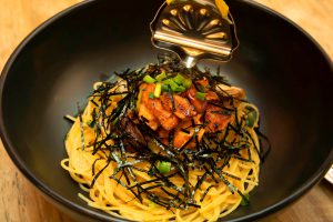 …〈すぱじろう〉の「たらことサーモンとねぎのすぱ」