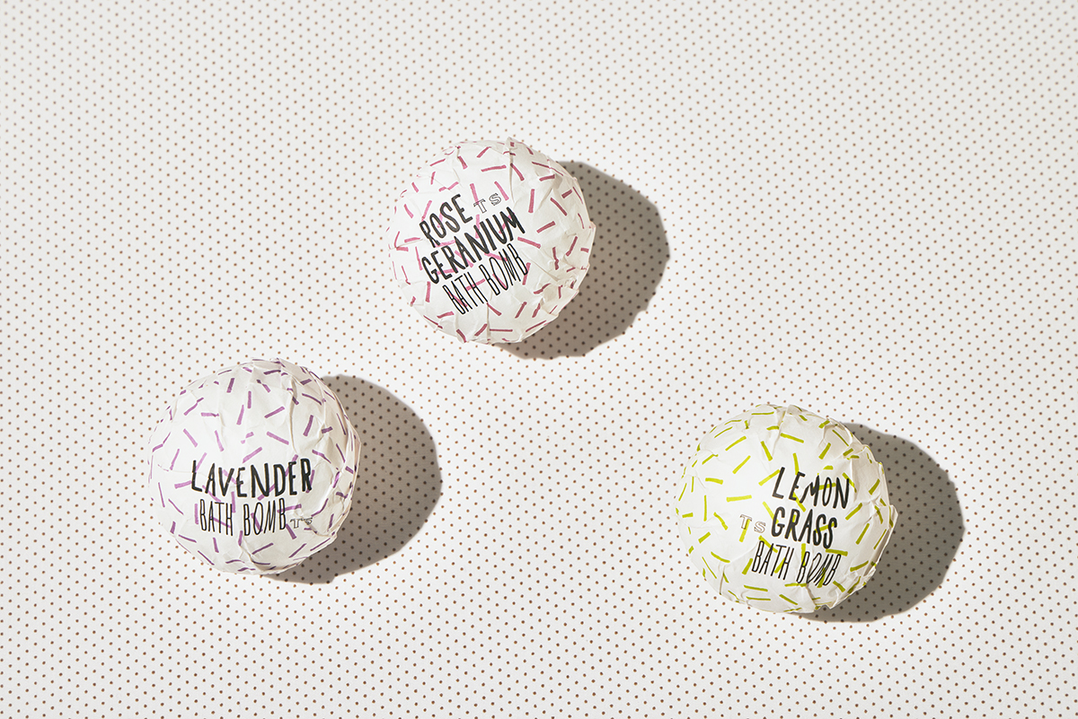 〈トゥデイズスペシャル〉BATH BOM 左から、LAVENDER、ROSE GERANIUM、LEMONGRAS 各449円