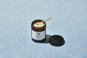大豆から抽出した植物性のソイワックスが原料。ナチュラルなコットン芯を用い、手作業で作られたもの。「タイムとオレンジの香りがリラックスタイムへと誘います。蓋付きなので、使わない時の収納や、旅先に持ち運ぶ時に便利」。〈コレックス〉渋谷ヒカリエ5Fで販売中。