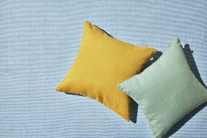 上質なコットンとリネン、2つの天然繊維を織り上げて染色後に起毛加工を施した、イタリア製の生地カレイドを使用。「IDĒEらしいオリジナルのクッションカバーです。かさばらず保管もしやすいので、引っ越し祝いにおすすめ」。クッションの中材は別売り。〈IDÉE SHOP VARIÉTÉ〉渋谷ヒカリエ5Fで販売中。