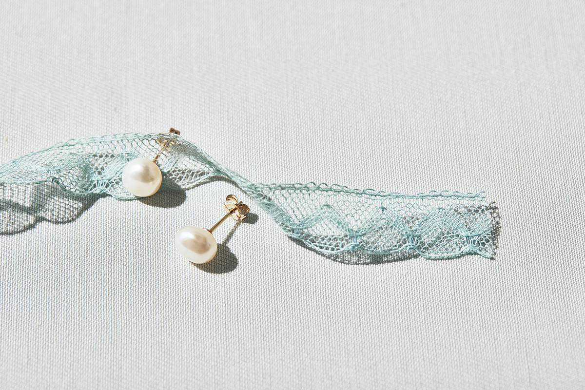 神戸にアトリエを持つ〈Atelier d’antan(アトリエダンタン)〉が手がけた、淡水パールのピアス。「ひとりひとつは持っていたいのがパールジュエリー。淡水パールは形が不均一で表情が異なるため、二つ目のパールにもいいですね。ファッション次第でカジュアルにもフォーマルにもつけられるのが素敵」。〈クラスカ ギャラリー&ショップ“ドー”〉渋谷ヒカリエ4Fで販売中。