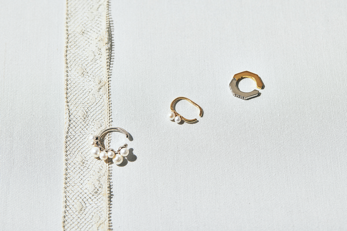 いつでもお洒落でいたい女性に人気のアクセサリーブランド。「イヤーカフなら、ピアスホールがあいている人/あいていない人を問わずプレゼントできます。上質な素材を使ってサイズ感が小さいタイプ(中央)。遊び心があふれるカジュアルなもの(左)。気分でシルバーとゴールドどちらを強調するか選べるもの(右)。贈る相手をイメージして選ぶのも楽しいと思います」。〈Jouete ADDITION〉渋谷ヒカリエ3Fで販売中。