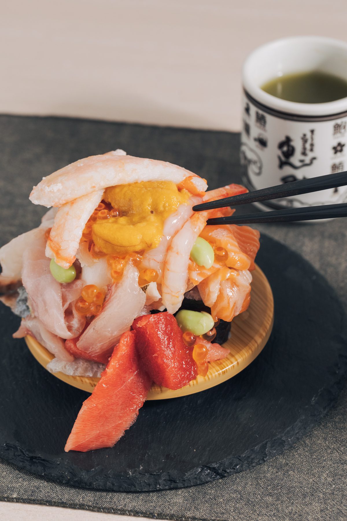 絶対美味しい!に決まっていますが、やはりこのメニューの“撮れ感”ポイントは、箸を入れるとこれでもかと言わんばかりに盛り付けられた海鮮たちが、崩れ落ちてくるその瞬間。