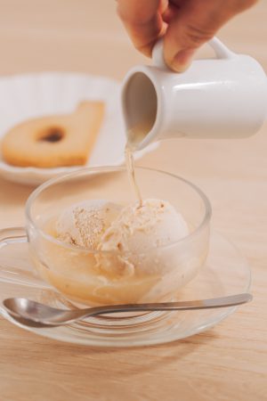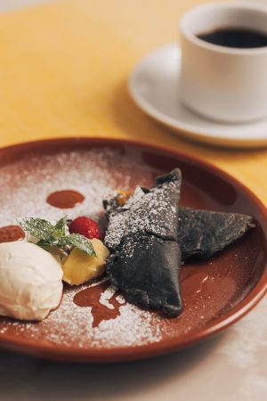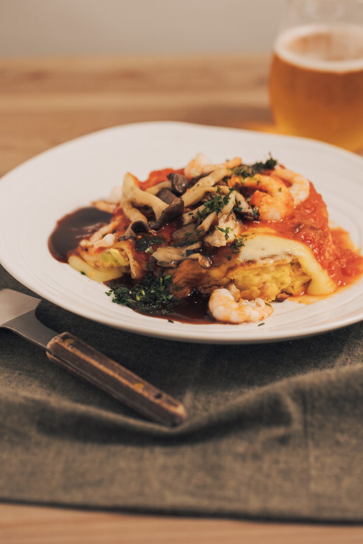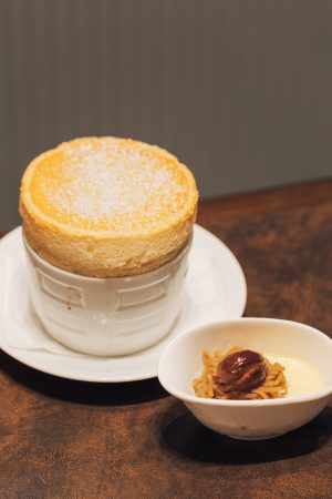 旬の安納芋クリームと大学芋をふんだんに使用した、ボリュームのあるパンケーキで、とろけるソースは動画映えすること間違いなし。見た目だけでなく、安納芋のクリーミーな食感と、コクをしっかりと贅沢に楽しめる一品です。