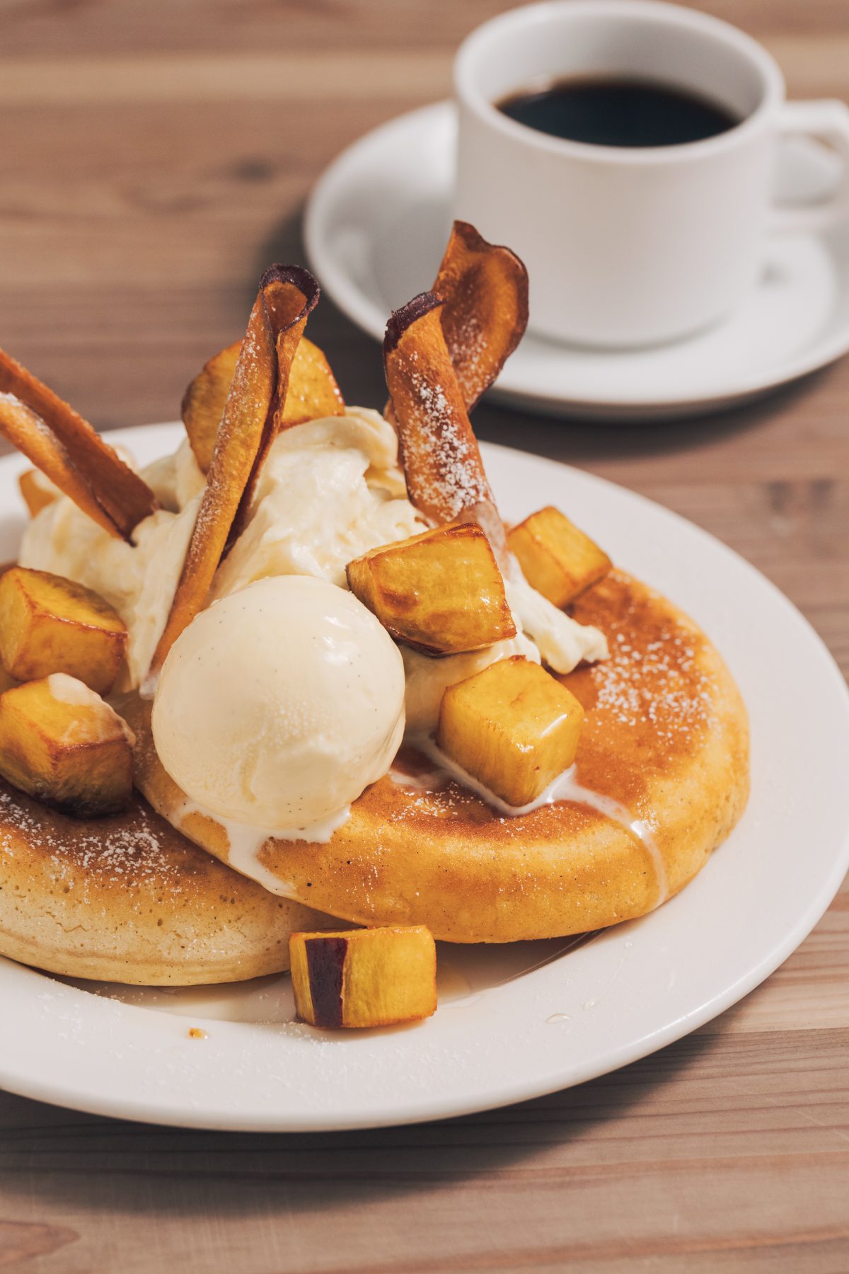 芋×パンケーキの最強スイーツコンビは、映えでも魅せる