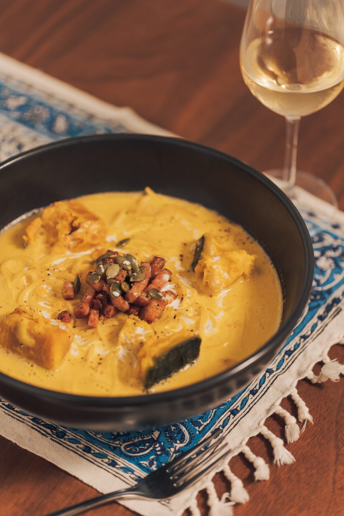 寿司の次はおとなり韓国より。韓国料理を提供する〈渋谷 水刺齋(シブヤ スランジェ)〉では、秋の味覚のカボチャをメインにしたタッカルビが登場。