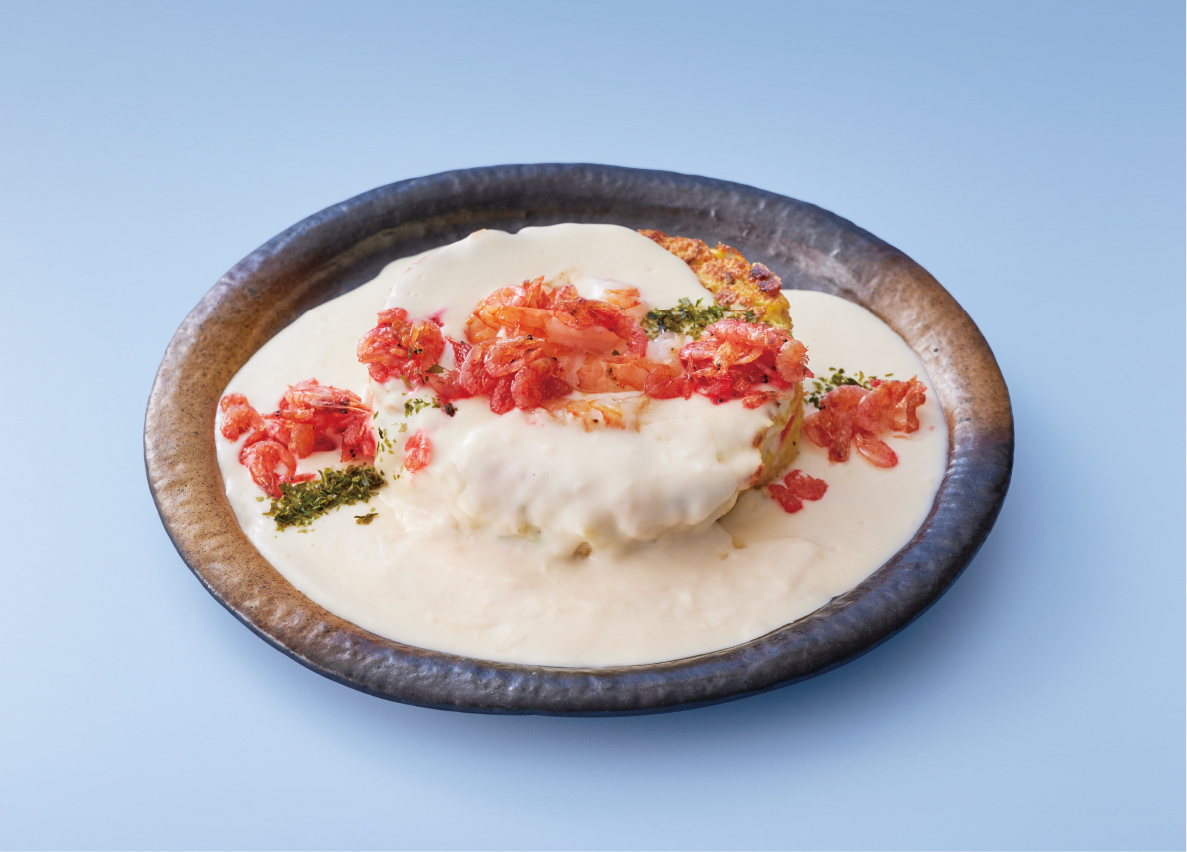 特製ふわとろ焼き エビと下仁田ネギのホワイトソース