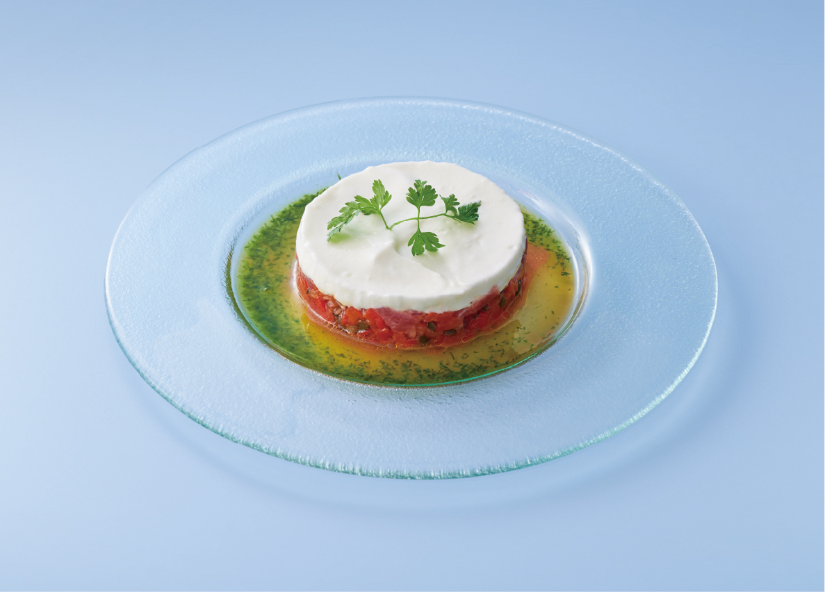 今回のメニューは<ボデガ風 マグロのタルタル>。パプリカ&オリーブ、ビネガーでマリネしたマグロ、牛乳のソースを3層仕立てにし、仕上げにハーブオイルをかけたディナータイムに味わえるひと皿。ボデガ風ならではの絶妙なマリアージュをぜひぜひご堪能ください!