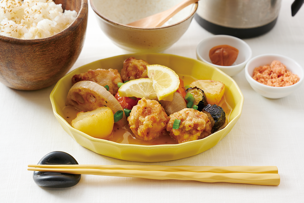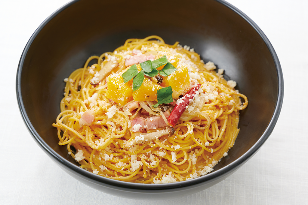 「オレンジとアスパラのクリームそうめん」は、オレンジのピールや果肉で香り付けしたクリームスープとそうめんを組み合わせた新感覚のおいしさ。アスパラガスやささみの具材で食べ応えも十分。アクセントに加えたシナモンが絶妙な味わいです。