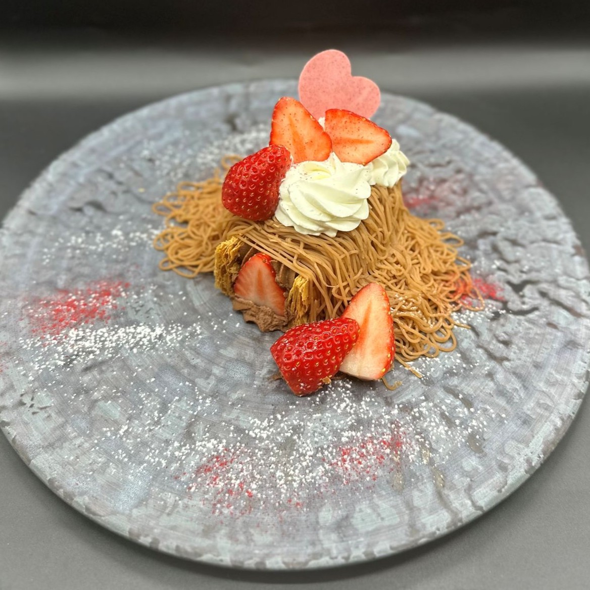 サクサクのパイ生地をベースに、たっぷりのいちごと濃厚なショコラカスタードクリームのミルフィーユ、そして利平栗のマロンクリームを贅沢に絞ったモンブラン。バレンタインの夜に、特別な人と食べたい期間限定のご褒美スイーツです。