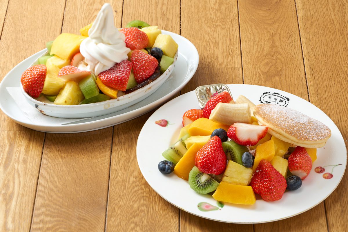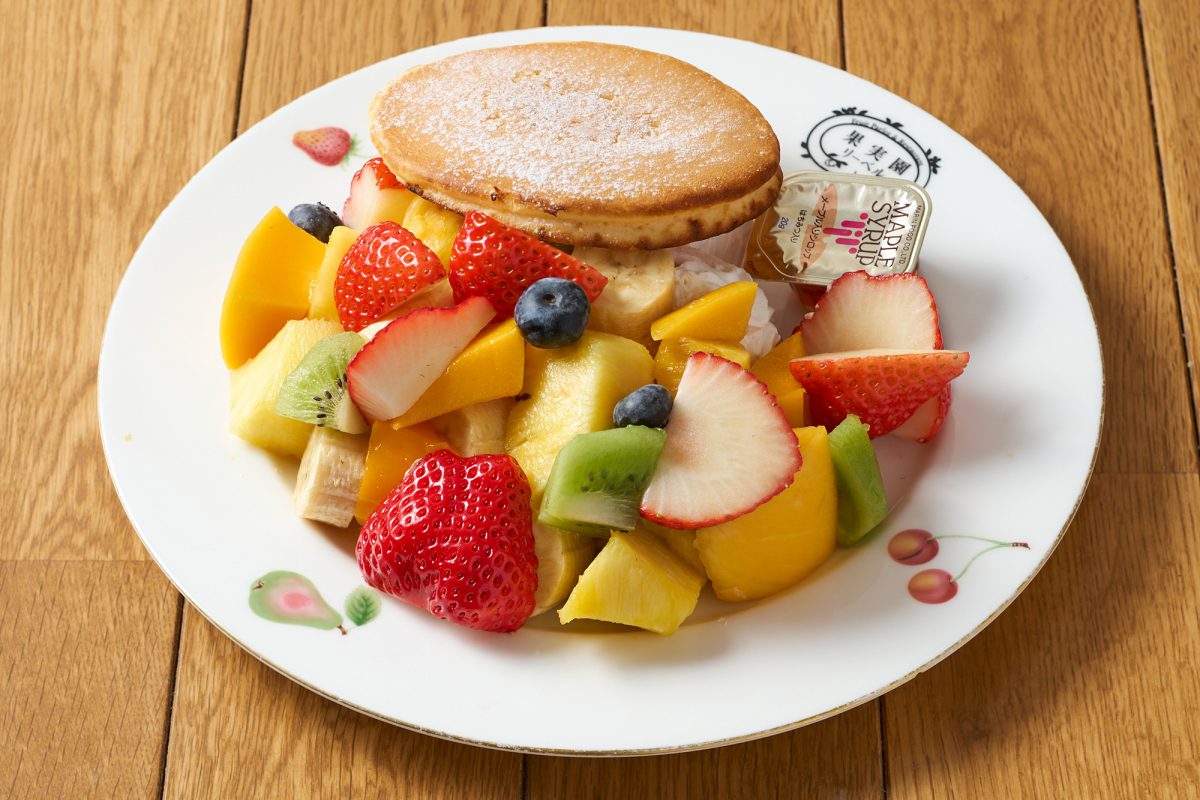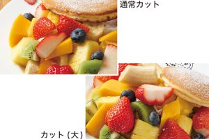 連日フルーツ好きな人で行列ができる〈果実園 リーベル〉では、あまり知られていないオーダー方法をご紹介。「季節のパンケーキ」や「フレンチトースト(アイス添え)」に盛られるフルーツは、オーダー時に、よりフルーツ感をブラッシュアップする、フルーツのカット方法を指定可能。カット無しや大きくカット、またはりんごの皮付きなど、カット方法が選べるのだ。フルーツ好きにたまらない、神対応。またアイスや苦手なフルーツを変更することもできるので、気軽にスタッフに相談を。