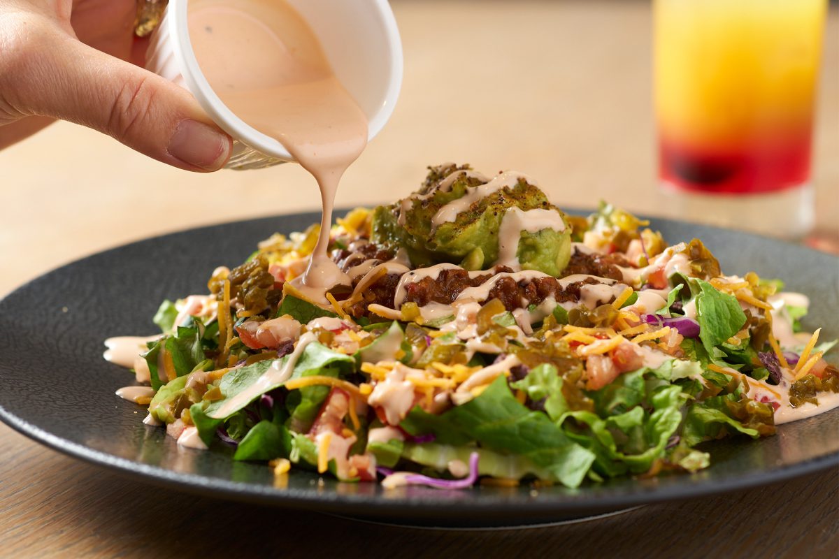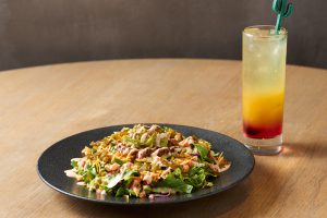 マヤルスで働くスタッフの皆が絶賛のアレンジは、タコライスにハラペーニョとコブドレッシングをプラスした「スパイシーコブタコライス」。ハラペーニョのピリッとしたアクセントとコクのあるドレッシングが野菜たっぷりのタコライスにベストマッチ。しっかりと混ぜて食べたい“メヒコ”な一皿。ソフトドリンク「カクタスソーダ」にマンゴージュースを追加したアレンジドリンクも絶品。サボテンエキスを使用したカクタスシロップに、マンゴージュース、最後に強炭酸でブラッシュアップした、見た目にもこころ踊りそうな一杯。