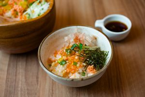 丼ぶり、お茶漬けとして楽しめる「おひつごはん」と、野菜を使った和のおかずとお茶漬けの具が選べる「お茶漬け膳」のW名物を掲げる創作だし茶漬け専門店。おひつごはんは、海鮮系の12種類の定番のほか、季節限定メニューも続々登場。「鮭といくらの北海ごはん」は、不動の人気を誇るレギュラーメニュー。ご飯を覆い隠すほど鮭のほぐしとプチプチのいくらがのり、食欲を刺激するビジュアルに感動。そのまま食べた後に、お出汁をかけてお茶漬けをアツアツのまま頬張って!