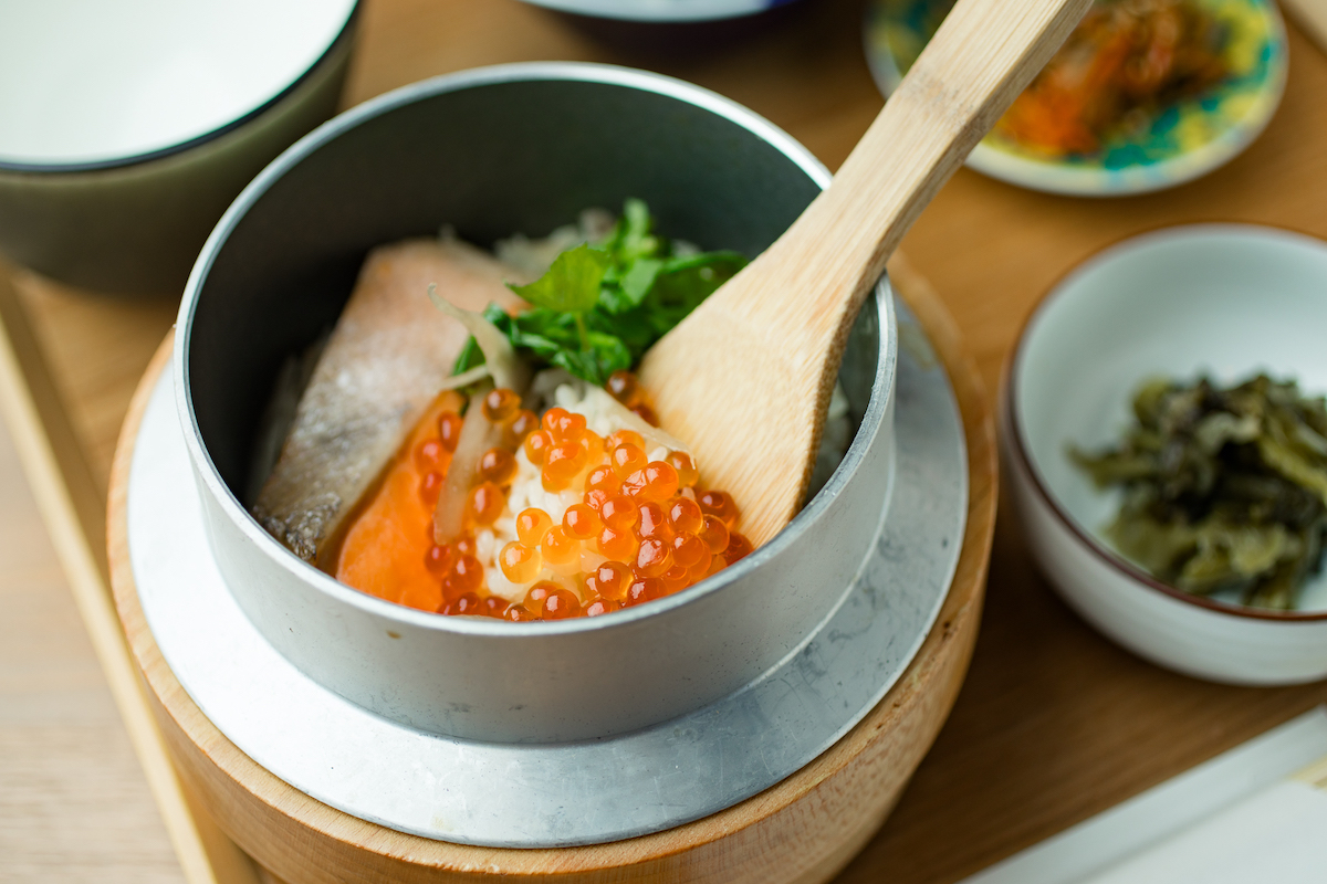 〈和食時々酒 ときのとき〉の「鮭といくらの羽釜ごはん」