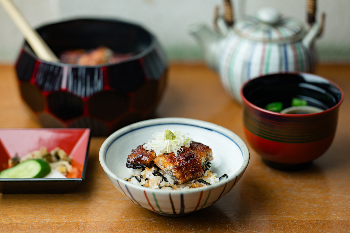 厳選した良質なうなぎを毎朝店でさばいて提供。一度白焼きしてから蒸し、さらに創業当時から受け継がれた継ぎ足しのたれと共に、じっくり丁寧に焼き上げる。「名物お櫃うなぎ茶漬」は、3通りの食べ方を楽しめる人気メニュー。おひつにたっぷりのうなぎごはんが入り、まずはそのままうなぎの美味しさをかみしめて。次に薬味をのせて、最後にアツアツの出汁をかけてお茶漬けに。秋田の契約農家直送の米を、ふっくら炊いたご飯も絶品で、ぺろりといただける。