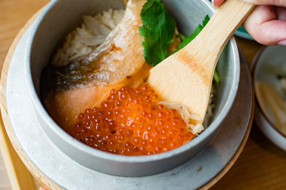 〈和食時々酒 ときのとき〉の「鮭といくらの羽釜ごはん」