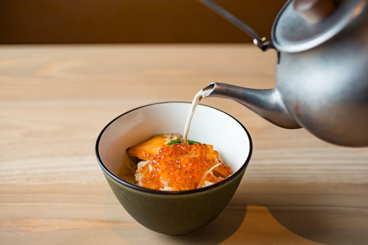 〈和食・酒 えん〉から生まれた、割烹や料亭の味をカジュアルに楽しめる新業態。羽釜ごはんは看板メニューで、常時3種類用意し、注文が入ってから20分かけてお出汁でふっくらと炊き上げる。「鮭といくらの羽釜ごはん」は、鮮やかなオレンジ色をした銀鮭と、海の宝石と呼ばれているいくらを合わせた華やかな一品。鮭は様々な種類があるが、銀鮭は脂肪分が多いの特徴。脂のりが良く、身の柔らかさと深い旨みを感じられる。いくらは口の中でプチプチと弾け、甘くとろける!