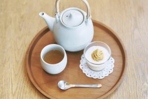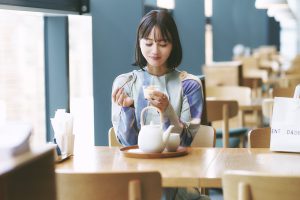〈渋谷ヒカリエ〉での買い物はまだまだ続くので、休憩がてらカフェでティータイム。「渋谷の街を一望できる最高の空間で、各都道府県をテーマにした月替わりの定食や、体が喜ぶスイーツが味わえます。ゆったりと落ち着いた雰囲気で、買い物途中の休憩に最適です」