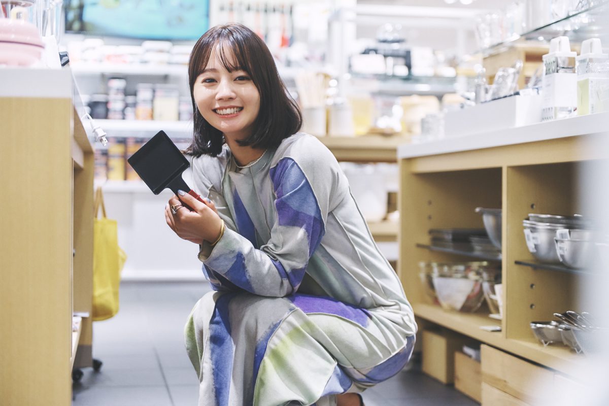 次はキッチンアイテムの専門店〈ラ・クッチーナ・フェリーチェ〉へ。話題の調理家電から上質な日用品まで取り揃え、最近料理にハマっているNANAMIさんも興味津々。「私が愛用しているブレンダーや包丁を発見。気になっていたキッチン用品や、見たことがない最新の調理家電もたくさん置いてあって、ついつい見入っちゃいます」
