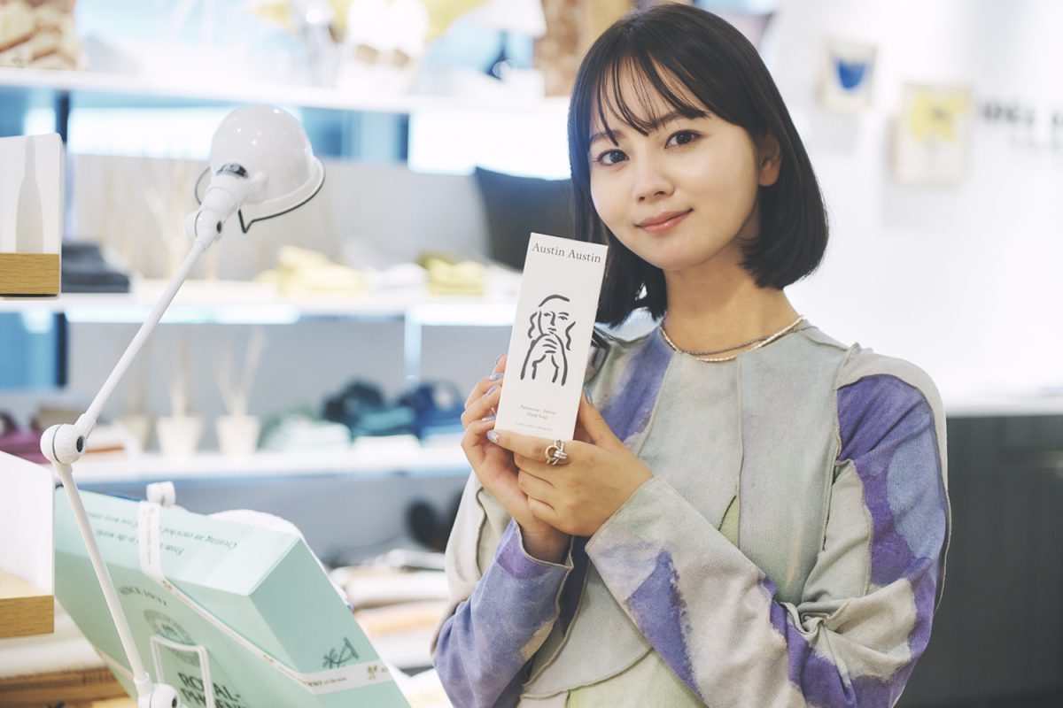 「美容室にちょっといいハンドソープが置いてあるとテンション上がりますよね。この〈Austin Austin〉のアイテムは、英国伝統の洗練されたハンドメイド製法で作られているので肌にも優しそうだし、心地よい香りにも癒されるので、これに決めました!」