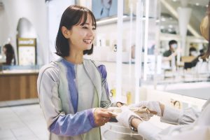 買い物を終えて、満足げな表情を浮かべるNANAMIさん。「〈渋谷ヒカリエ〉は、インテリア、キッチン、美容アイテムなど、ハイセンスで手ごろなギフト探しに最適なショップがたくさん揃っているので、素敵なアイテムを見つけることができました。何をあげたらいいかわからないという時も、何かしら良いアイテムに出会えるので重宝しそう! それにレストランやカフェも充実しているので、ひと息つきながらお買い物が楽しめるのも〈渋谷ヒカリエ〉ならではの魅力ですね。今日行けなかったショップものぞいてみたいので、この後早速行きたいと思います(笑)」