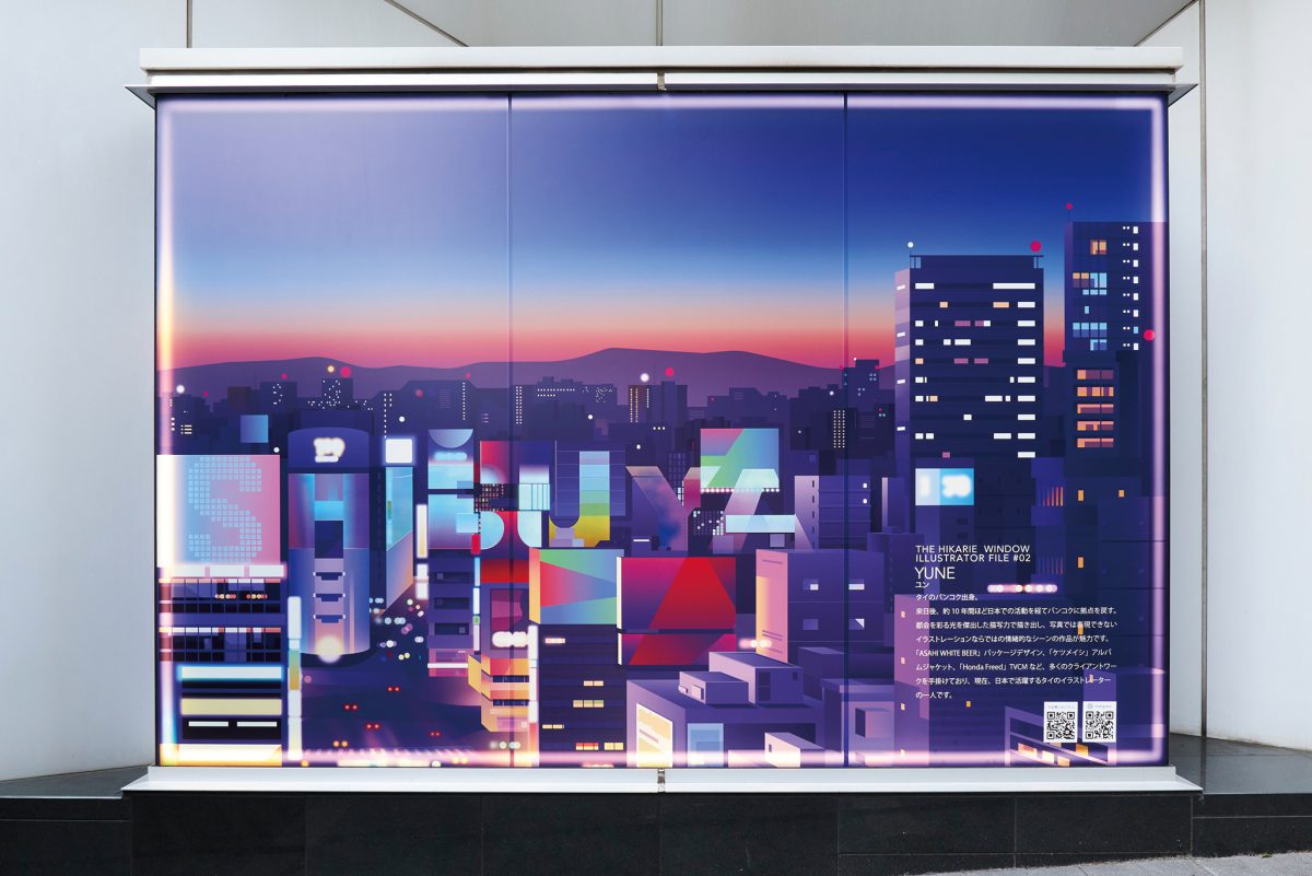 「文化発信」をテーマに、渋谷ヒカリエ裏通りにあるショーウィンドウにアート作品が展示されるプロジェクト「THE HIKARIE WINDOW」。第2弾となる今回は、広告やパッケージ、CDジャケットなどの様々な作品を手掛け、日本で大活躍しているタイ出身のイラストレーター「YUNE」さんのイラストを展示しています。そんなYUNEさんに今回のプロジェクトへの想いを語っていただきました。