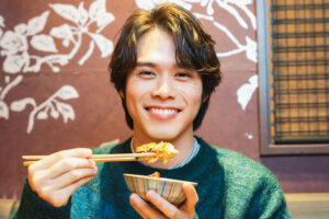 食べ方がひつまぶしと同じで、最初はそのまま食べて、次に薬味も一緒に、そして最後にお茶漬けにするという流れでしたが、うなぎの焼き方が関東風でふわっとした食感というのと、タレも甘過ぎないというところが、より食べやすくなっているのかなと思いました。僕実は、この撮影の前に牛丼食べちゃって、結構お腹いっぱいの状態だったんです(笑)。でも普通に美味しく食べられたし、うなぎのタレ特有のイメージのあるギトギト感も感じず、最後にお茶漬けでさっぱり仕上げられたのでペロリでした(笑)。