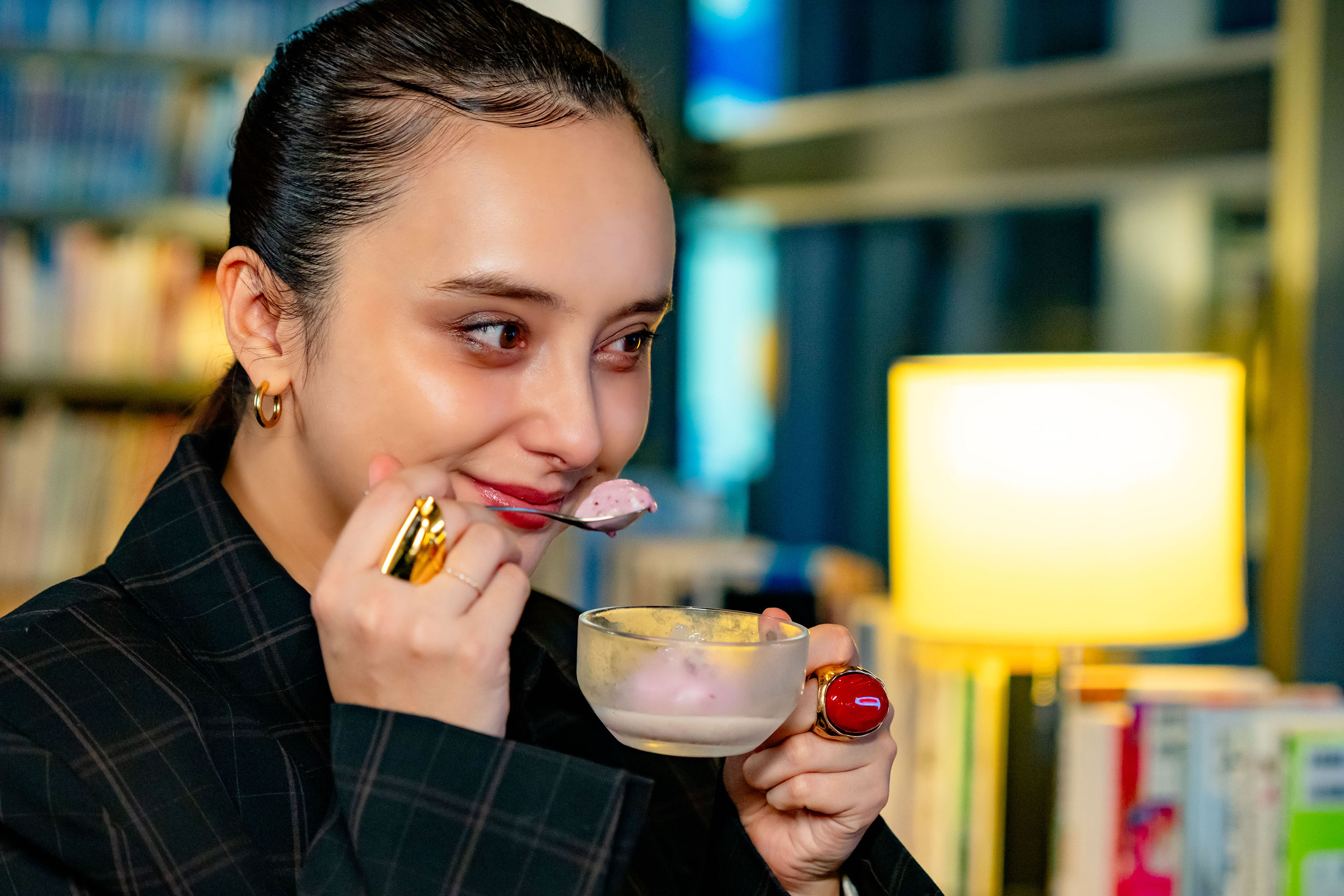 ――では、デザートの「今月のアフォガード」はどうでしたか?ブルーベリーのヨーグルトアイスに、「ハッピーどぶろく」をかけたデザートでした。食べた感想もお聞きしたいです。