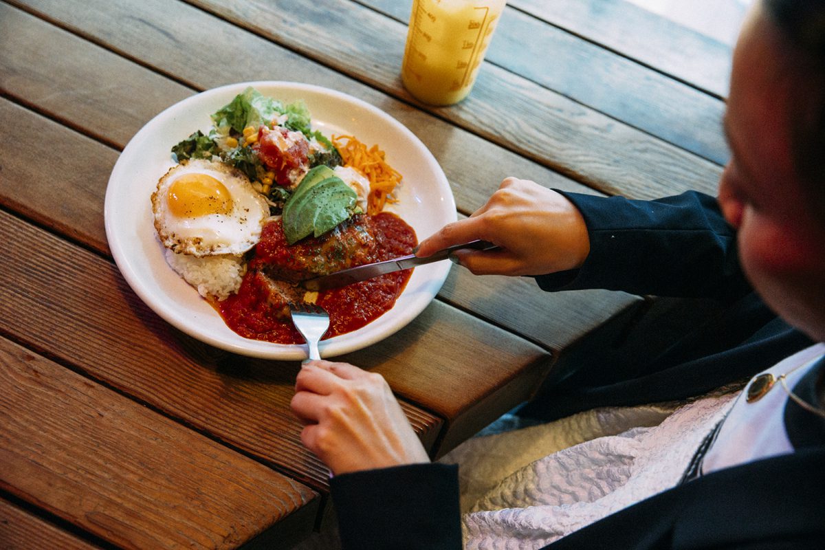 ここで初めてハンバーグを食べた時、ふわっとしているのに肉々しくて、「ハンバーグってこんなに高級な味なんだ!」って衝撃をうけて、ハマりました! 私、一度ハマるとずっとその料理を食べたり、お店に行ったりするので、当時めっちゃ来ていましたね…週1回は来ていたんじゃないかな。特に、朝から晩までの撮影など、ハイカロリーな仕事の後には必ず来て、消費した分をしっかり補充して(笑)。撮影中から〈MOGA cafe〉に来るのを楽しみに頑張っていたくらい!