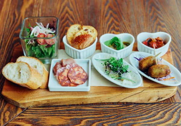 「いろいろ少しずつ食べられるのはやっぱりうれしいですよね。レバーペーストおいしい~。ワイン飲みたくなる~」