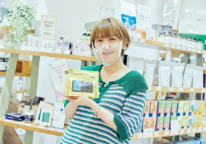 「このあいだ体調を崩して健康の大切さを実感したので、体にいいものを選ぼうかな」と、サーヤさん。〈Cosme Kitchen〉はよく来ているというだけに、勝手知ったる様子でチェックしていきます。途中、気になっていたスキンケアアイテムを見つけて「あ~、ほしい。でもこれ買うと予算オーバー…」と棚に戻し、サプリや食品のコーナーへ。発酵ペーストを見つけ、「『ビューティペースト』って名前からして効きそう。腸活にも良さそうだし、これ買う!」と即決。さらにミネラルたっぷりのバスソルト、タスマニア島産の生はちみつも加えたラインナップに。お会計でメンバーズアプリを使って5%オフにする堅実ぶりも発揮して、買いものを終了!