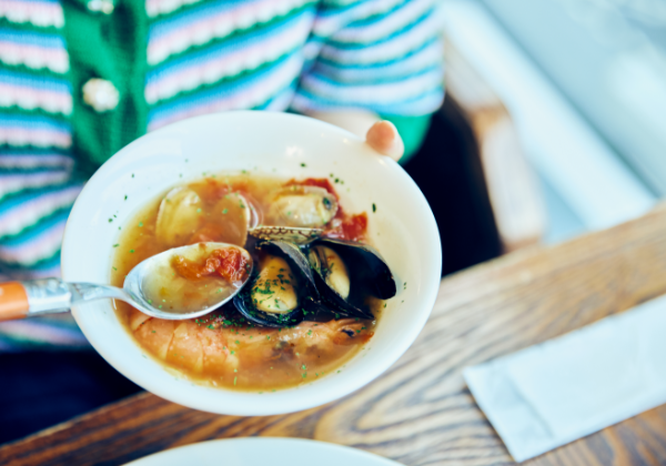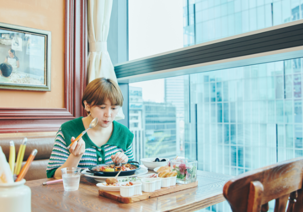 買い物もご飯もお茶もできるのが、〈渋谷ヒカリエ〉のいいところ。「お腹すいた!」というサーヤさんが選んだのは、スペインバル〈Bar Español LA BODEGA〉。大学がスペイン語学科だったのを機にスペイン料理にハマり、食べに行くことも多いのだとか。