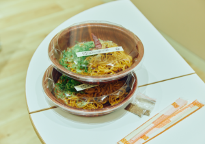 テイクアウトできるのは汁なしタイプで、サーヤさんは1,080円の「麻辣・汁なし担々麺」をチョイス。ふたつ買って2,160円になり、154円は自腹でお支払い。