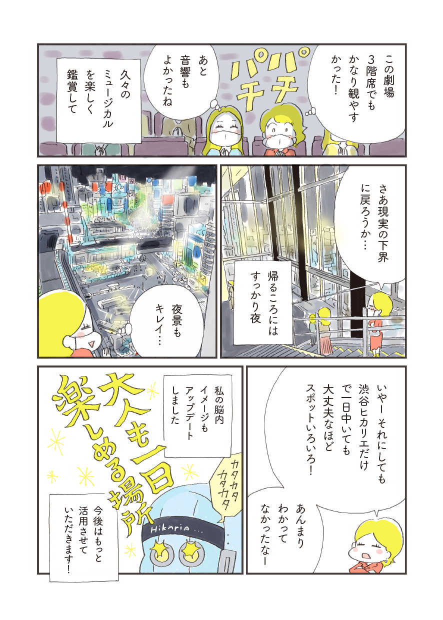 渋谷ヒカリエの魅力をもっと知りたい! そんな声に応えるマンガルポを、前後編に分けてお届け。コミックエッセイスト・ハラユキさんによる“大人の渋谷ヒカリエ探訪記”、後編はカルチャー面についてお届けします!