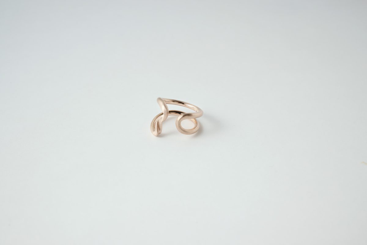 2本の指を包み込むようなデザインの「トゥーリング」。繊細なシルエットで、指をきれいに見せる。