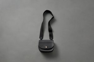 コロンとしたフォルムがかわいらしいレザーバッグ。綿テープを使った太めのストラップで個性をプラス。