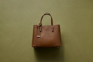 こっくりブラウンと型押しのクラシックなデザイン。自立する形で普段使いもしやすい。