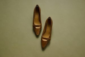 クラシカルに不可欠なビットがサイドにちらり。ヒールがあることで、脚長効果もアップ。