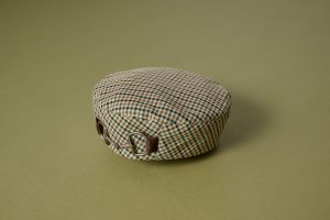 旬のビットを大胆にあしらったベレーは、深さのあるシルエットがおしゃれ。さりげないチェック柄でコーディネートのアクセントに。